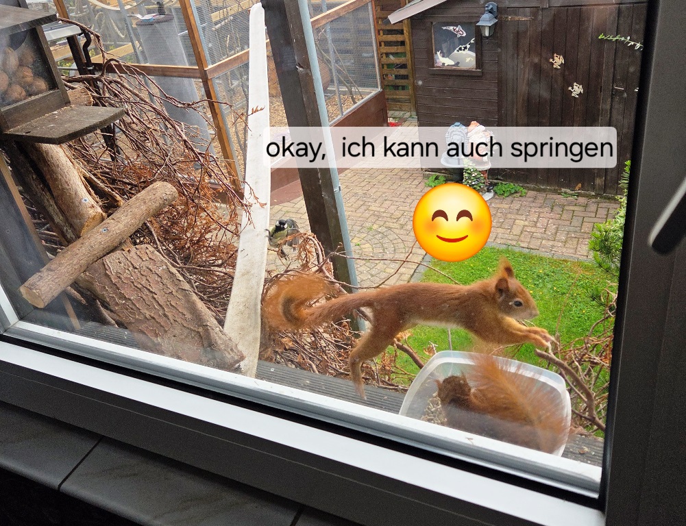 und sogar zum Laufen im Laufrad täglich öfter zu Besuch kommen.